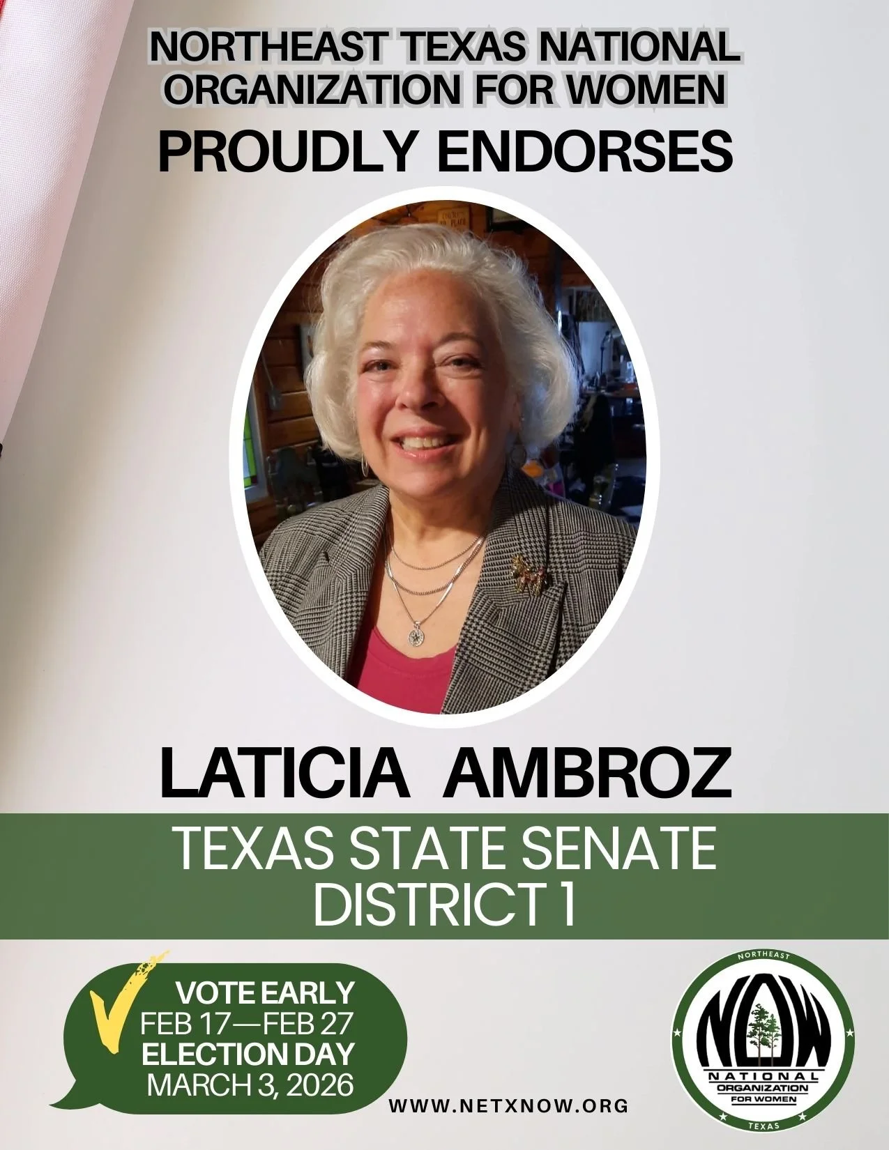 Today I’m happy to endorse a wonderful woman who has been supporting the community and me by standing by my side in the fight for justice and human rights. Please vote for Laticia Ambroz.